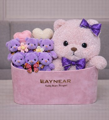 Mor mini ayıcık buket detayları