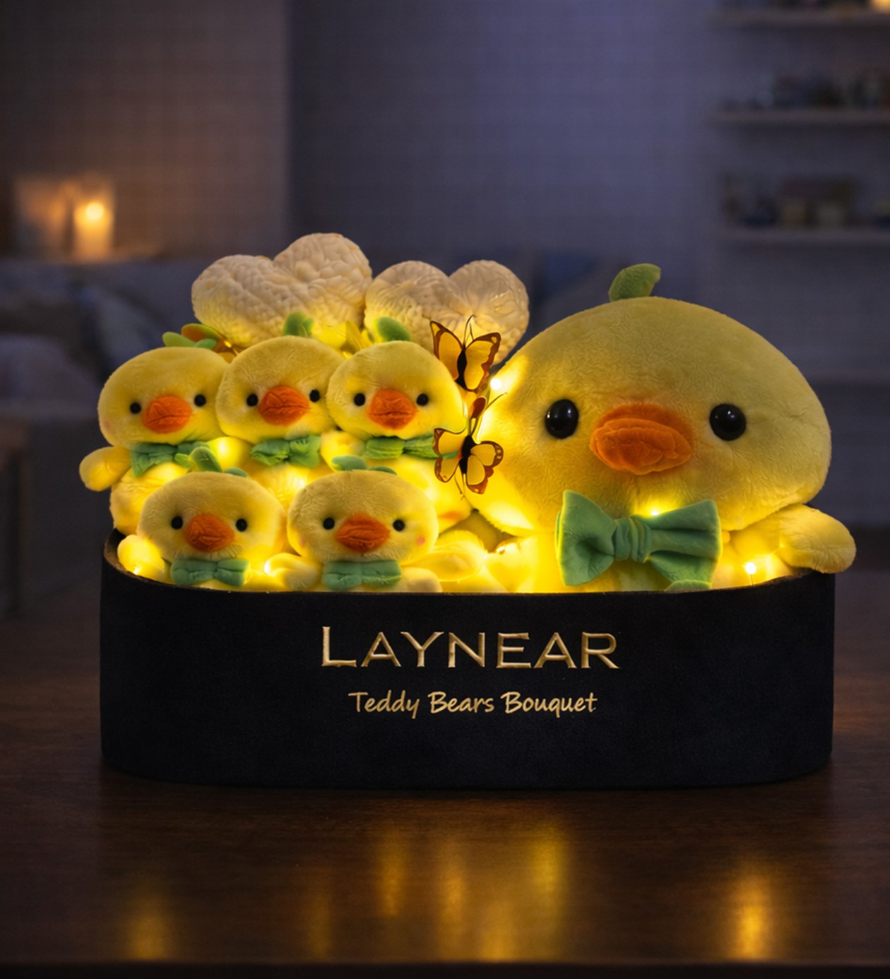 İç kısmında yer alan sıcak LED ışıklar ürüne büyüleyici bir ambiyans katarken, kalp ve kelebek detayları tasarımı tamamlar. Dekoratif olarak kullanıma uygundur ve ortamda hoş bir atmosfer oluşturur.