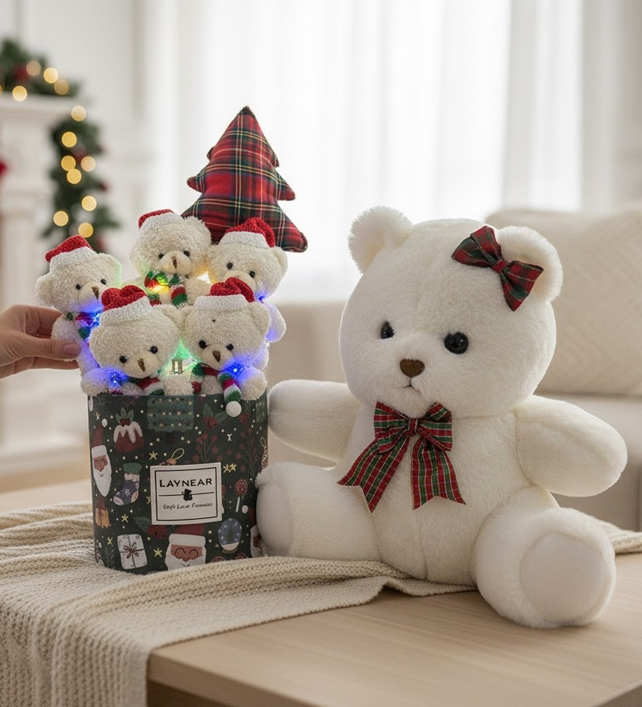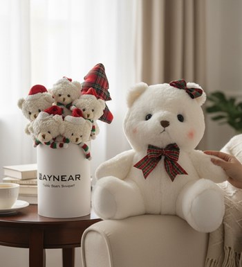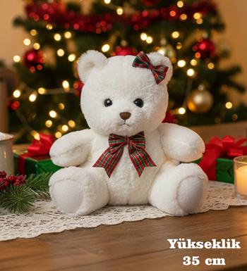 Premium Serisi - Noel Yılbaşına Özel Noel Silindir Led Işıklı Buket Sevimli Beyaz Ayıcık