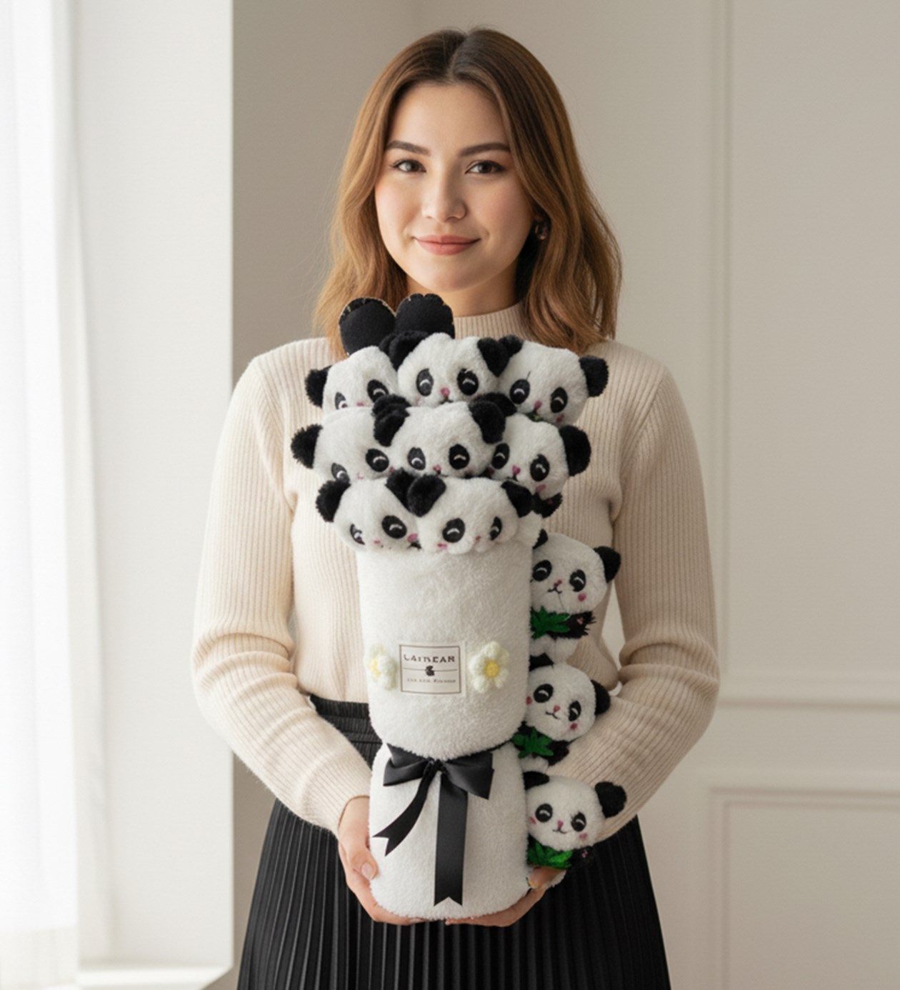 Premium Sevimli Peluş Pandalar Peluş Vazo Tasarımlı Buket