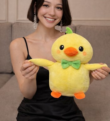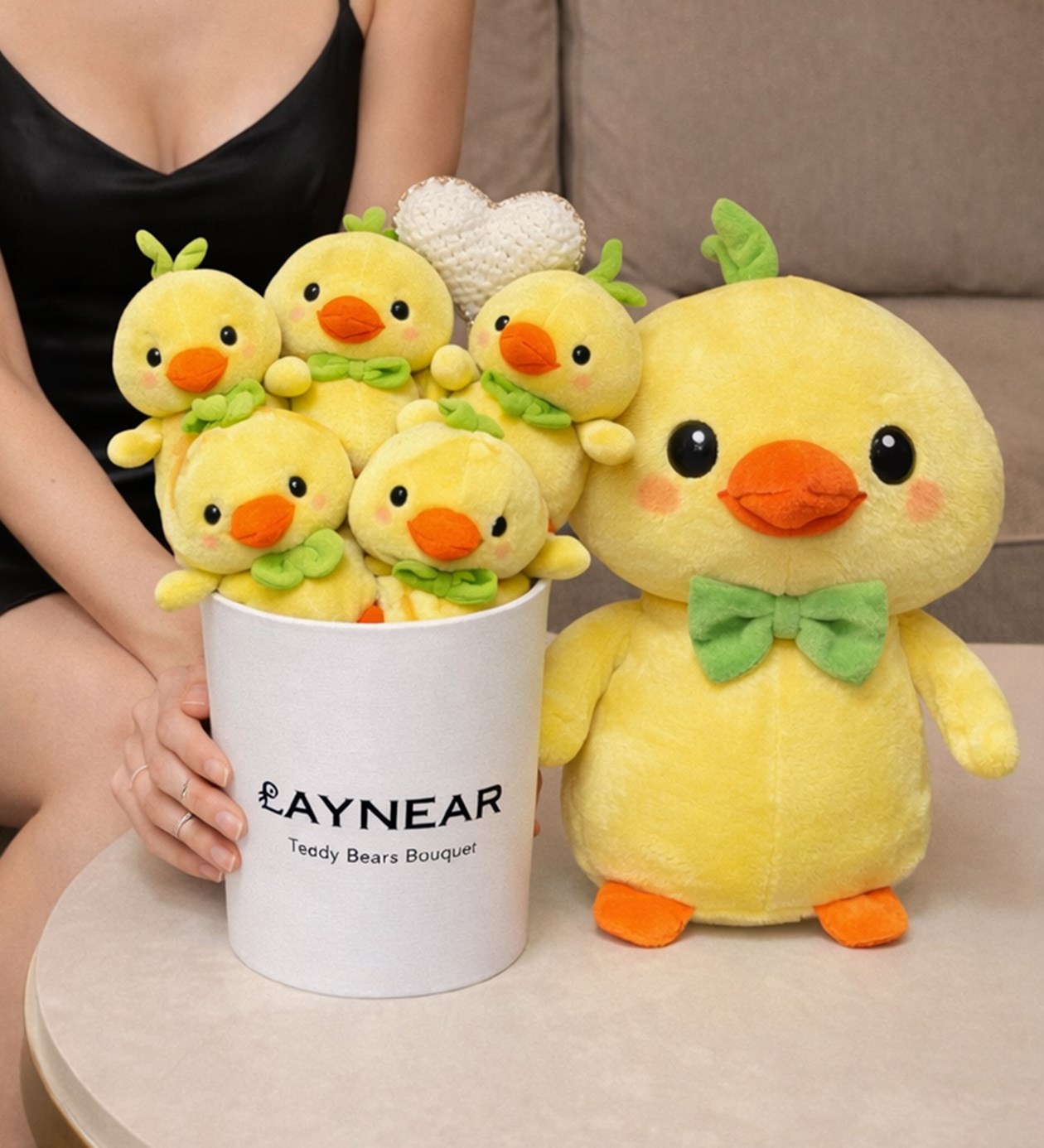 Canlı sarı rengi, sevimli turuncu gagası ve şık yeşil papyon detayıyla dekoratif olarak da göz doldurur. Kolay taşınabilir ideal boyutu sayesinde ister oda süsü, ister hediye buket tamamlayıcısı olarak kullanılabilir.